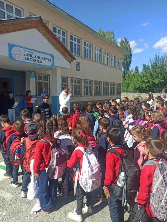 2025 – 2026 Eğitim Öğretim Yılı’na “Merhaba” diyerek başlayan okulumuzda ilköğretim haftası kutlamaları coşkuyla kutlandı. Okul bahçesinde düzenlenen törene okula gelen öğrenciler ilk günün heyecanını yaşadı. İlk defa törene katılan birinci sınıf öğrencileri heyecanlarını gizleyemediler.